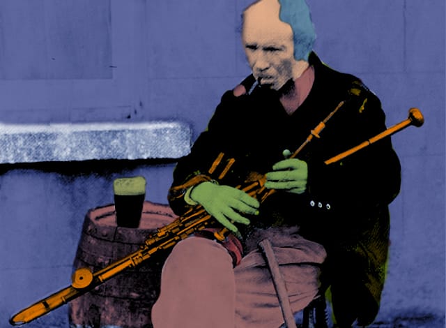 In my latest mixed-media piece, I’ve brought to life the vibrant legacy of Irish travelling pipers from the early 1900s using bold pop art techniques. These musicians, like the iconic Johnny Doran, played a crucial role in preserving uilleann piping during a time when traditional music was at risk of fading. Performing at fairs and markets, they were more than just entertainers—they were storytellers, sharing a living history deeply rooted in families like the Wexford pipers.